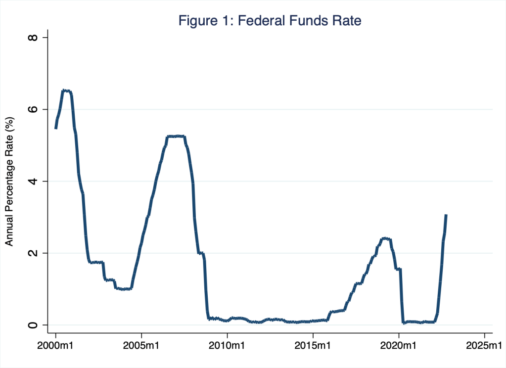 As Figure 1 illustrates, in the aftermath of the 2008 financial crisis and COVID-19, the FOMC lowered its target for the federal funds rate to essentially zero, or what became known as the zero lower bound. Lower bound because the FOMC chose not to impose negative nominal federal funds rates on the banking system and, thus, the economy.