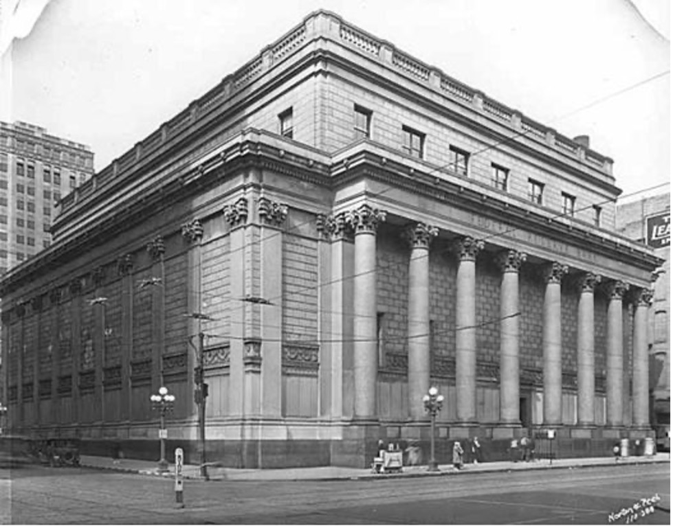 The Minneapolis Fed has been around since the founding of the Federal Reserve System in 1913, when Congress passed the Federal Reserve Act. And since then, the Minneapolis Fed has occupied five addresses in downtown Minneapolis. The first two addresses housed the Minneapolis Fed temporarily, when the reserve bank consisted of relatively few employees. The Minneapolis Fed opened on November 16, 1914, headquartered in the Minnesota Loan & Trust Co. on Marquette Avenue and 4th Street. By January 1915, the reserve bank occupied the The New York Life Building on Second Avenue South and Fifth Street, where the bank remained until 1925. The first building intentionally constructed to house the Minneapolis Fed was located on Fifth Street and Marquette Avenue, where the reserve bank opened for business on January 1, 1925. In Illustration 1, I picture the Minneapolis Fed; the base structure of the building, which now vertically spans several stories, essentially remains in place today.