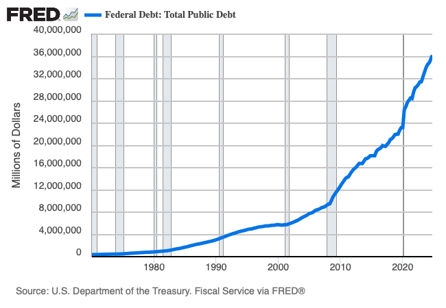 As a rule, scaling macroeconomic variables is sensible; but there are exceptions to the rule, most notably, when our focus is the change in the level of the macroeconomic variable—think, the decrease in the level of federal government expenditures for which we might wish—and thus, the efforts to which we must go to bring about the decrease. Noting that federal government expenditures (Figure 2) in the fourth quarter of 2024 registered 24 percent of GDP distracts us from the fact that the level of federal government expenditures in the fourth quarter of 2024 registered $7 trillion—as in $7 million, one million times.